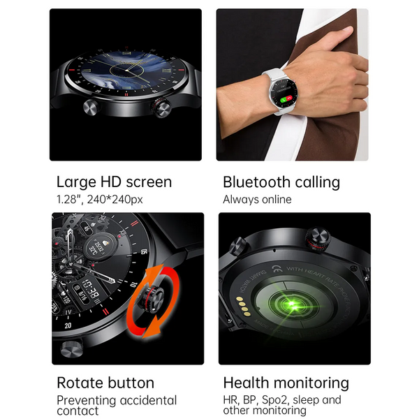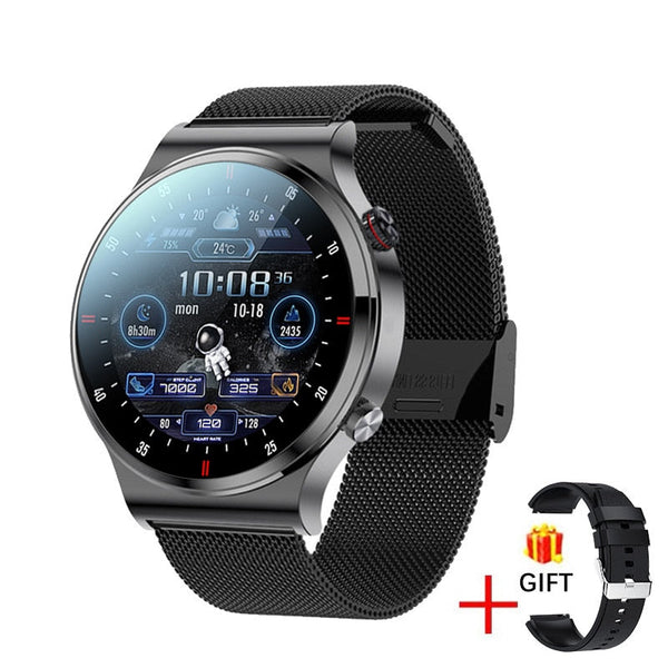 - 1 x NFC Bluetooth Calling Sports Fitness Health Smart Watch for Men Black Silver - Colour: Black Silver - Strap Design: Silicone Steel Mesh - Hardware Information: - Eco-friendly product: yes - Waterproof grade: IP67 - Wristband Material: Silicone - Wristband wearing range: 14-20CM - G-sensor - Trumpet - Microphone - Bluetooth antenna - Motor - Bluetooth BLE5.0 - LCD 1.3"IPS screen 240*240 - TP COB capacitive multi-touch - Charging method: Magnetic charging - Heart rate/ECG/Body temperature/Blood pressure/Blood oxygen - Dial push - Two side keys (on-off key + encoder rotation key) - Battery capacity: 260mAh - Software Function: - Basic functions: Date/week display weather push menstrual cycle (app-gender is set to female only) countdown card management remote photography sedentary reminder step counting distance calories heart rate/blood pressure/blood oxygen/stress/ECG/sleep monitoring Bluetooth music control call reminder SMS reminder social APP message reminder alarm clock reminder exercise mode raise your hand to brighten the screen find mobile phone stopwatch reject calls do not disturb mode multi-dial switching brightness adjustment firmware upgrade etc. - Social APP message reminder: Support WeChat QQ Facebook Twitter Line Whatsapp Instagram etc.