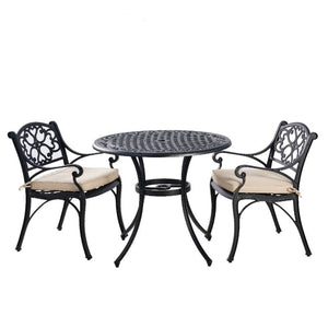 The Marco 3 Piece Cast Aluminium setting is lightweight but very sturdy. It is great on a balcony in a courtyard or in that cozy corner of your garden where you like to take a cup of tea or a cocktail with a friend.