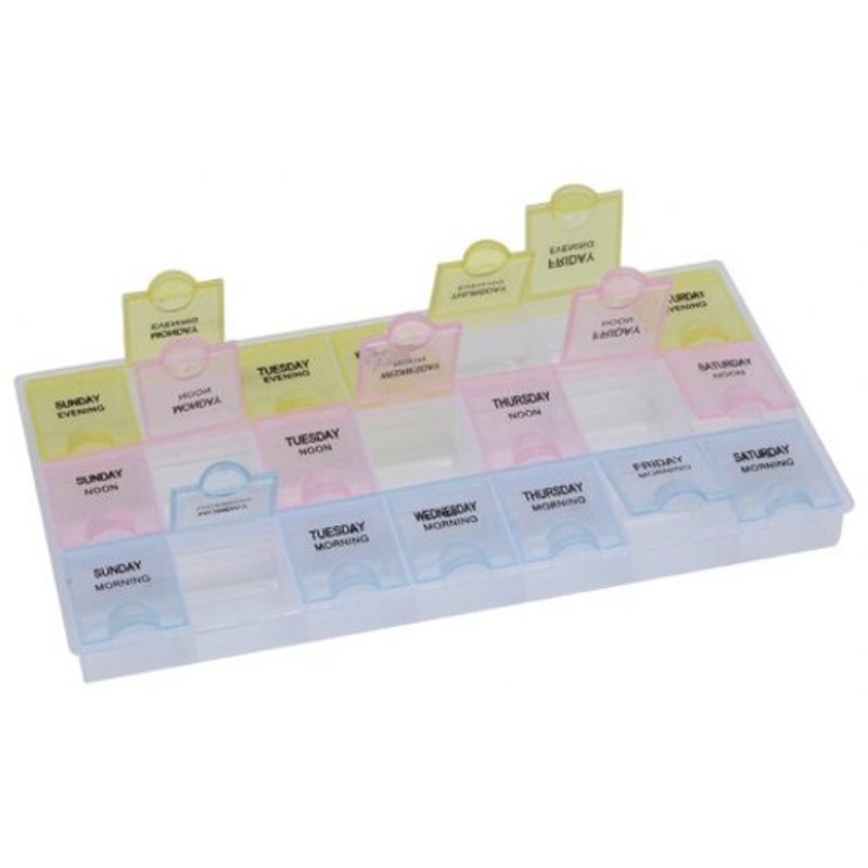 - 21 Compartments Storage Organizer Box Each Day Has 3 Compartments Labeled Morning Noon Evening