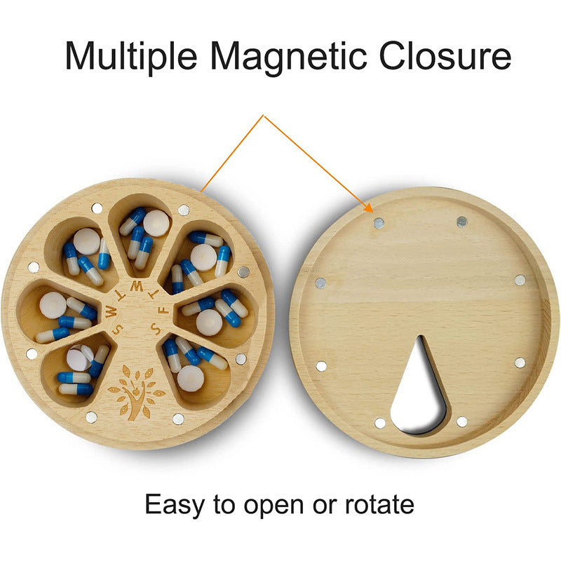 Elosung Natural Pill Organizer Weekly Rotating Medication Box Pill Boxes
