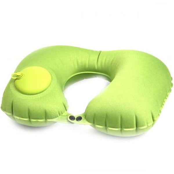Press Inflatable U Shaped Outdoor Travel Siesta Car Neck Pillow Purple Pillows