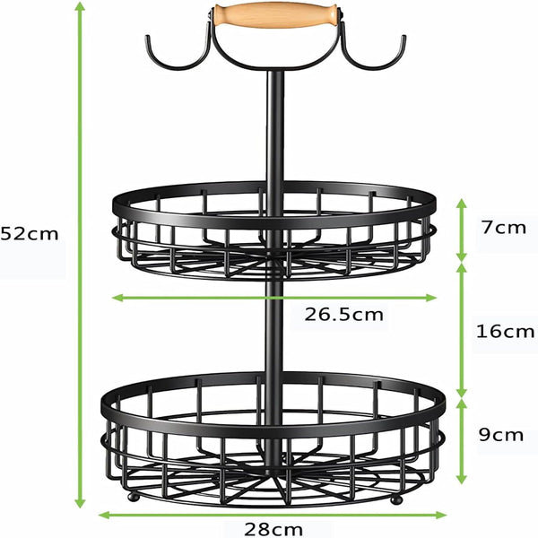 • Save Space: Maximize Your Kitchen Counter Space With This 2-Tier Fruit Basket Featuring Dual Banana Hooks. Perfect For Storing Fruits Vegetables Bread Potatoes Onions And Snacks In An Organized Way.
