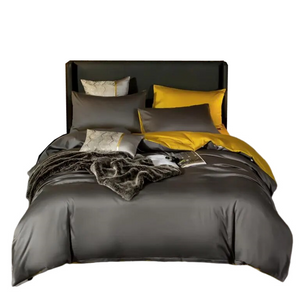 Deep Grey Yellow Ultra Soft Luxury Egyptian Cotton Double Size Bed Sheet Set Sheets