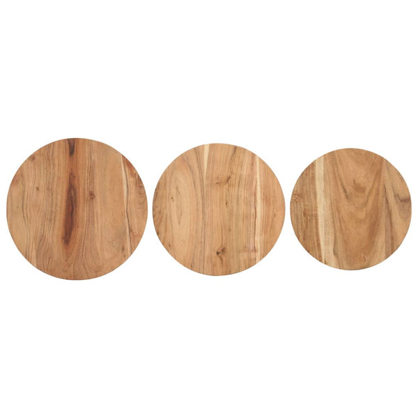Bring A Touch Of Charm Into Your Home Decor With These Side Tables! This Set Of Tables Is Made Of Solid Acacia Wood Making It Sturdy. The Exquisite Craftsmanship And Beautiful Wood Grains Make Every Piece Slightly Different From The Next. Additionally The Solid Tabletop Provides A Stable And Secure Surface On Which You Can Place Your Various Essentials. The Powder-Coated Iron Base Adds To The Table's Sturdiness And Stability. What's More You Can Stagger Or Separate The Tables To Meet Your Multiple Needs And Nest Them Together To Save Space When Not In Use. Important Note: The Colours And Wood Grain May Vary From Piece To Piece Making Each Piece Unique. The Package Is Random Ensuring The Exclusivity And Individuality Of Your Product.