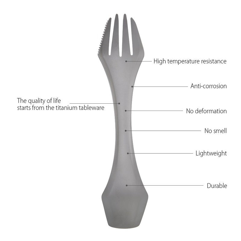 This Spork Serves As A Fork And Spoon. It Is Made Of Titanium Super Light Durable Corrosion-Resistant And Good To Health Great For Both Home And Outdoor Use.