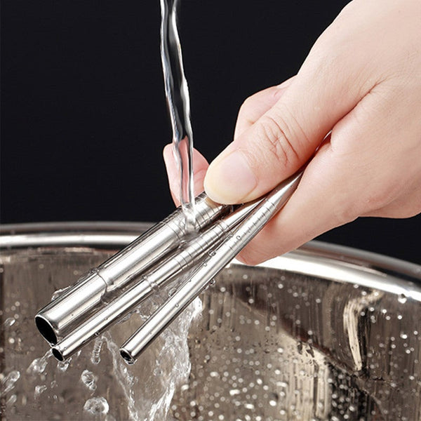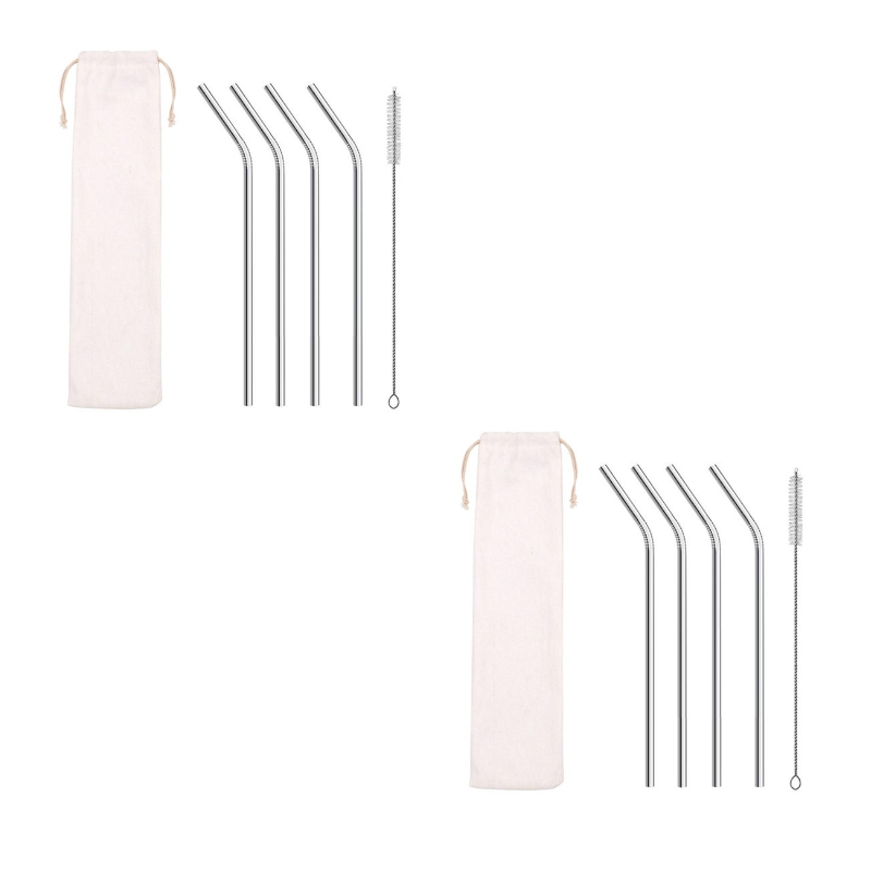 4Pcs Stainless Steel Reusable Drinking Straws Set With Cleaning Brush And Bag Straws & Stirrers