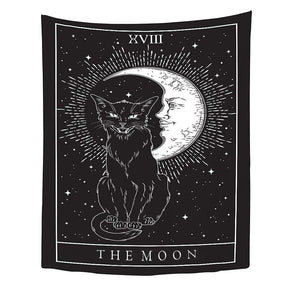 • 1 X Tapestry Black The Moon And Cat 150X130 Cm Tarot Card Psychedelic Scene Art Hippie Bohemian Decoration Sheets