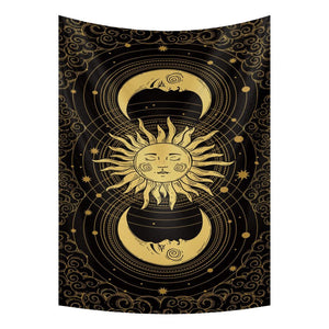- 1 X Tapestry Black Yellow Sun Moon 230X180 Cm Tarot Card Psychedelic Art Decoration