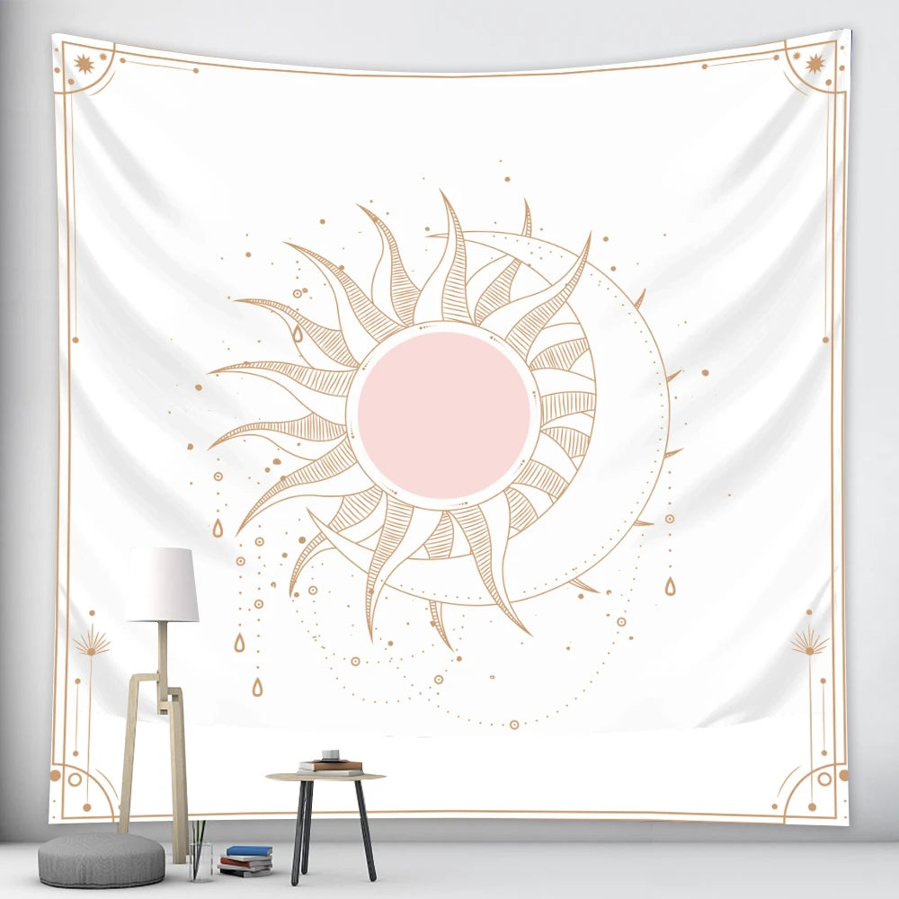 Tapestry Pink Sun Moon Dance Psychedelic Scene Art Hippie Bohemian Decorative Sheet Tapestries