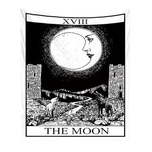 Tapestry White Black Moon 150X100 Cm Tarot Card Psychedelic Scene Art Tapestries