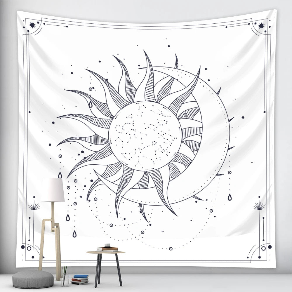 Tapestry White Sun Moon Dance 200X150cm Psychedelic Art For Decor Tapestries