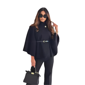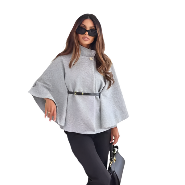 Stand Collar Batwing Sleeves Cloak Top With Belt Woolen Sweater Outwear For Women Tops