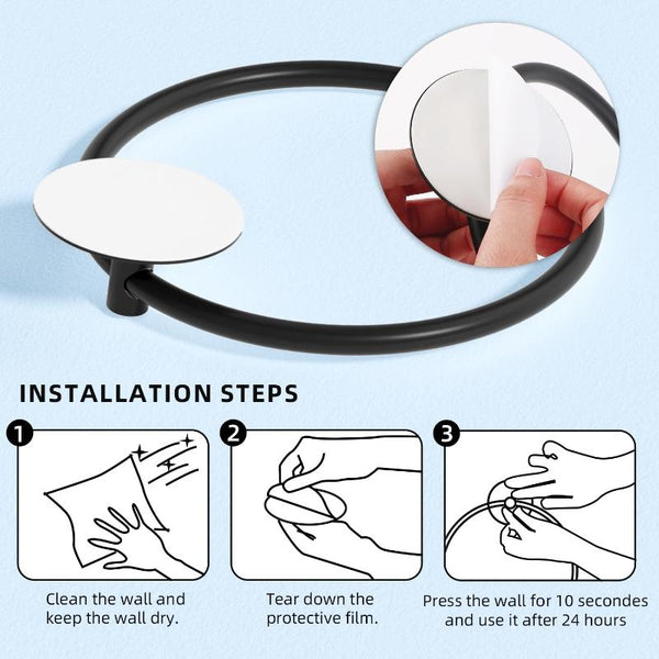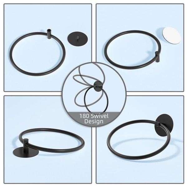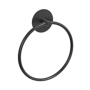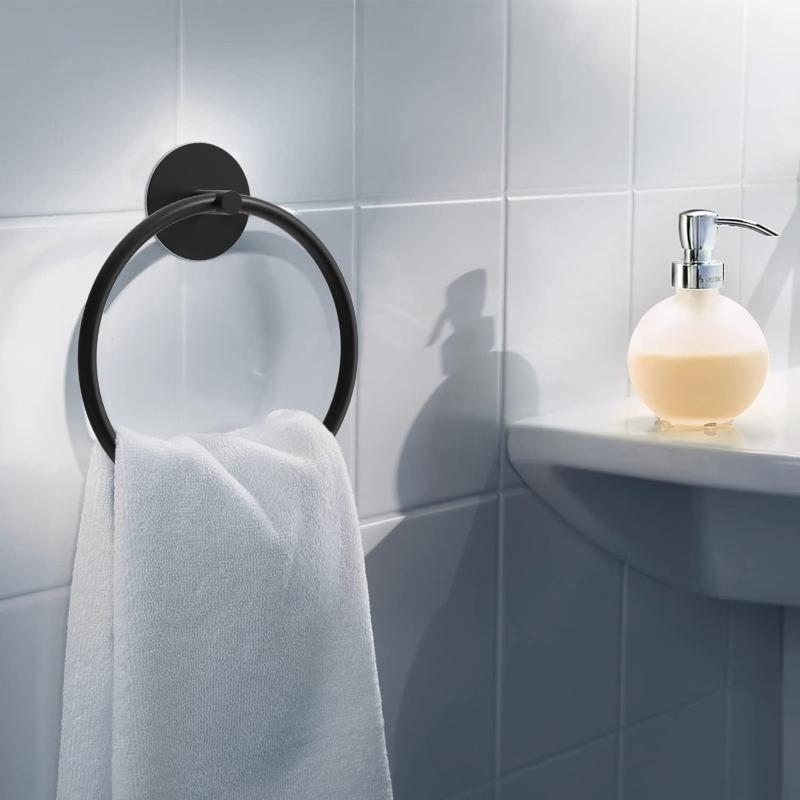 Bathroom Towel Ring Rack Adhesive Hand Towels Holder Hanger Round Black Towel Racks