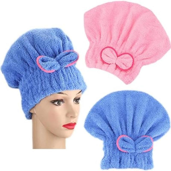 Hair Bonnets Blue Microfibre Quick Drying Bath Towels For Women Shower Hat Towels & Washcloths