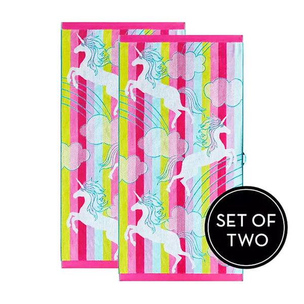 Renee Taylor 2 Pack Velour Kids Beach Towel 75 X 150 Cms Rainbow Towels & Washcloths