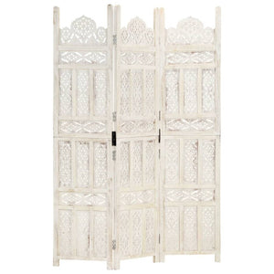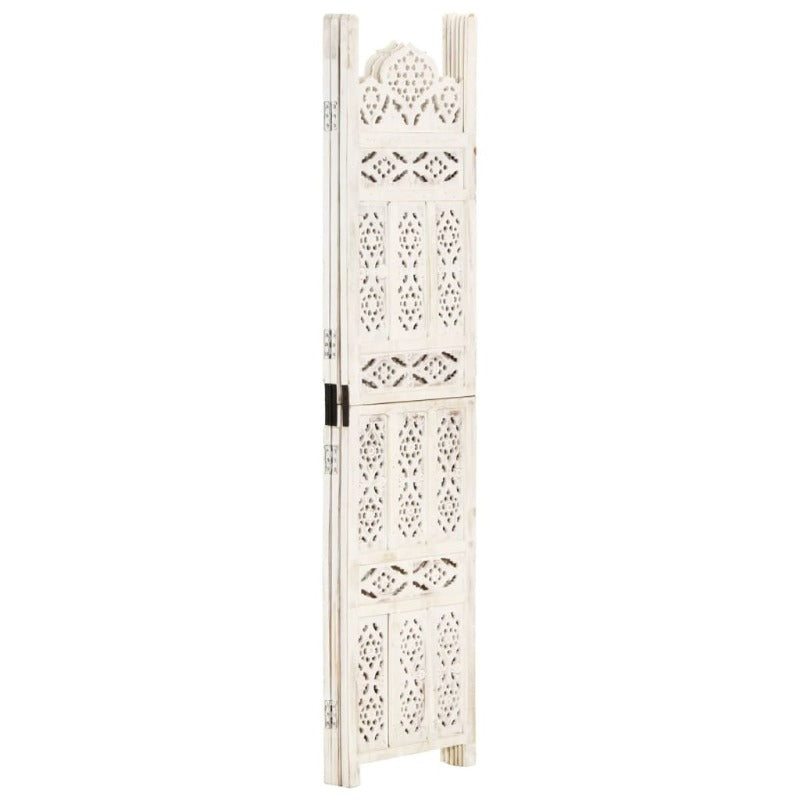 Hand Carved 3 Panel Room Divider White 120X165 Cm Solid Mango Wood Screens & Room Dividers