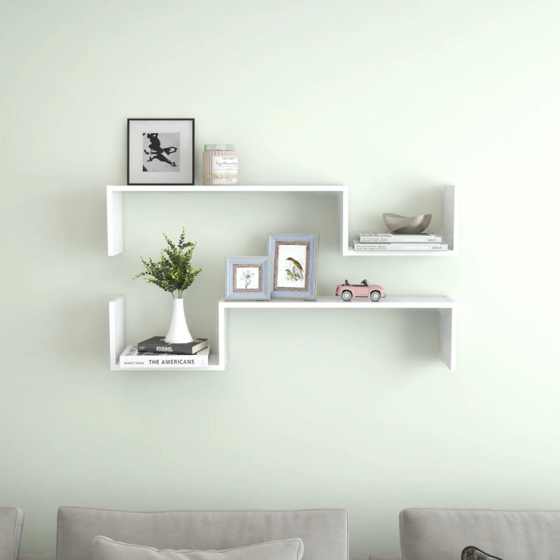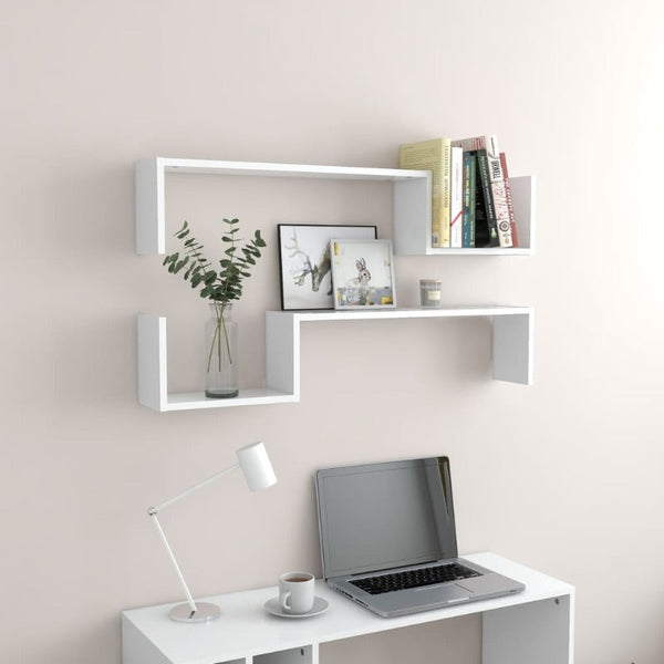 2 Pcs White 100X15x20 Cm Engineered Wood Wall Shelves