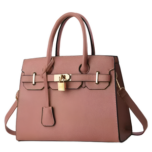 Elosung Pink Elegant Pu Leather Handbag With Lock Decoration Structured Tote Bag For Women Women's Bags & Handbags
