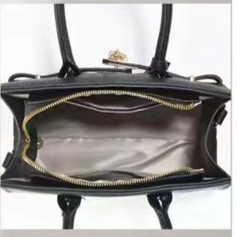 Elegant Pu Leather Handbag With Lock Decoration - Structured Tote Bag