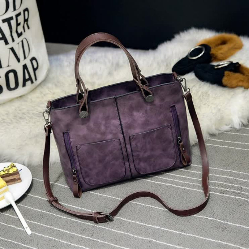 Elosung Purple Women's Classic Leather Tote Bag With Double Handles Multi Pocket Shoulder In Black Women's Bags & Handbags