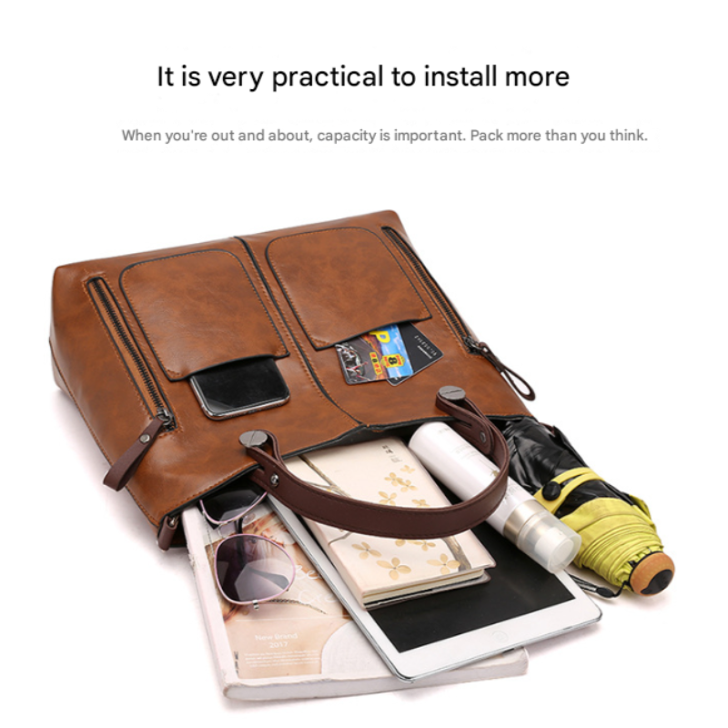 Upgrade Your Style With This Classic Pu Leather Tote Bag Designed For Modern Women Who Value Both Elegance And Practicality. Featuring Double Handles And Multiple Pockets This Bag Is Perfect For Work Shopping And Everyday Use.