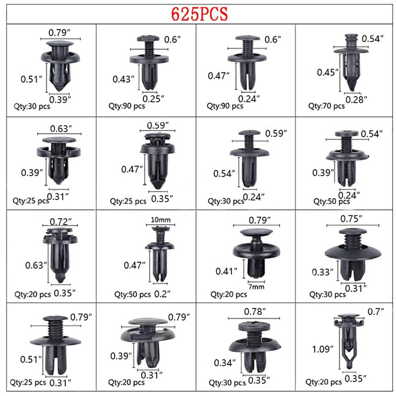 This Assortment Push Retainer Kit Comes In 16 Most Popular Sizes Fitting For Door Trim Radiator Shield Yoke Fender Bumper Side Skirt Grille Engine Cover And Splash Shield Retainers Replacement Compatible With Ford Gm Chrysler Toyota Honda And More.A