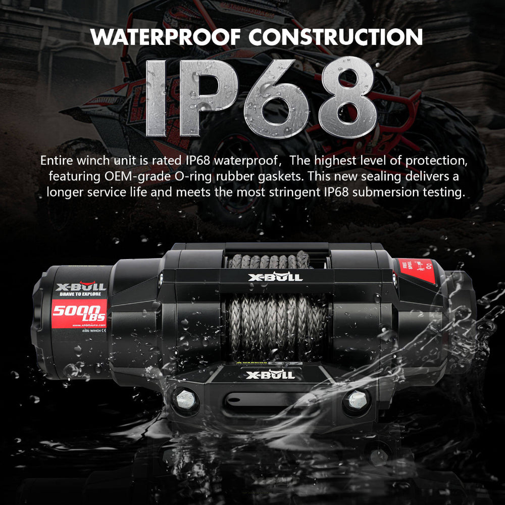 X Bull 5000Lbs Electric Winch 12V Synthetic Rope Atv Utv Boat Upgraded Version Tow Bars & Winches