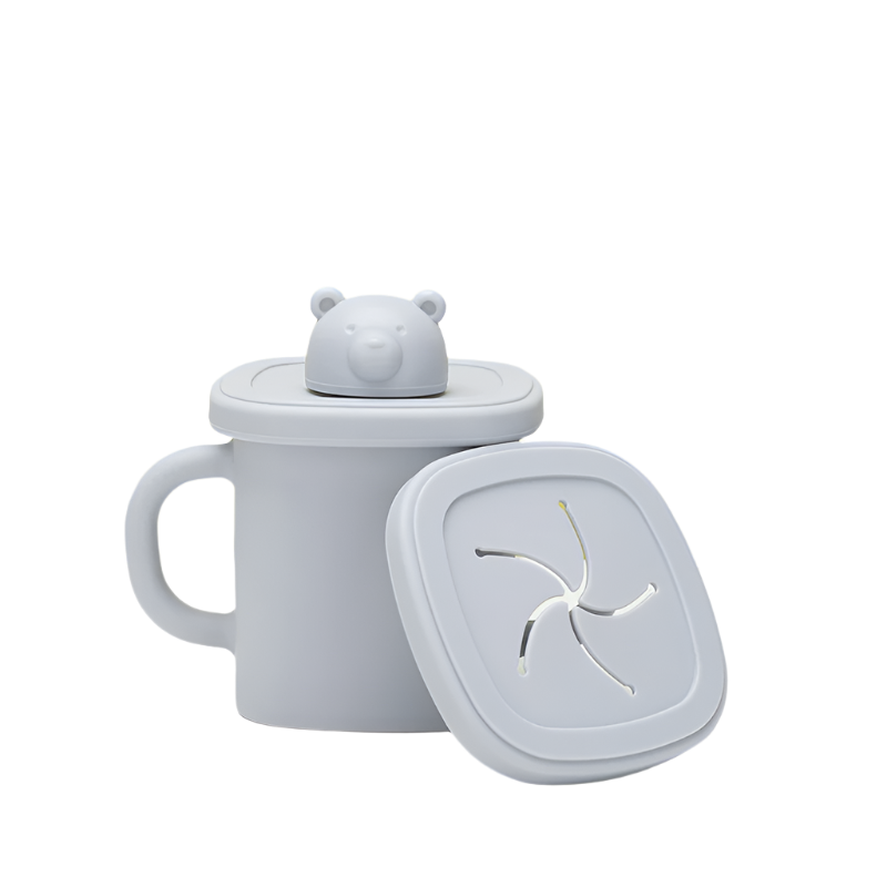 Blue Silicone Little One Training Cup With Dual Handles Duck Bill & Snack Lids Spill Proof Drop Sippy Cups & Mugs