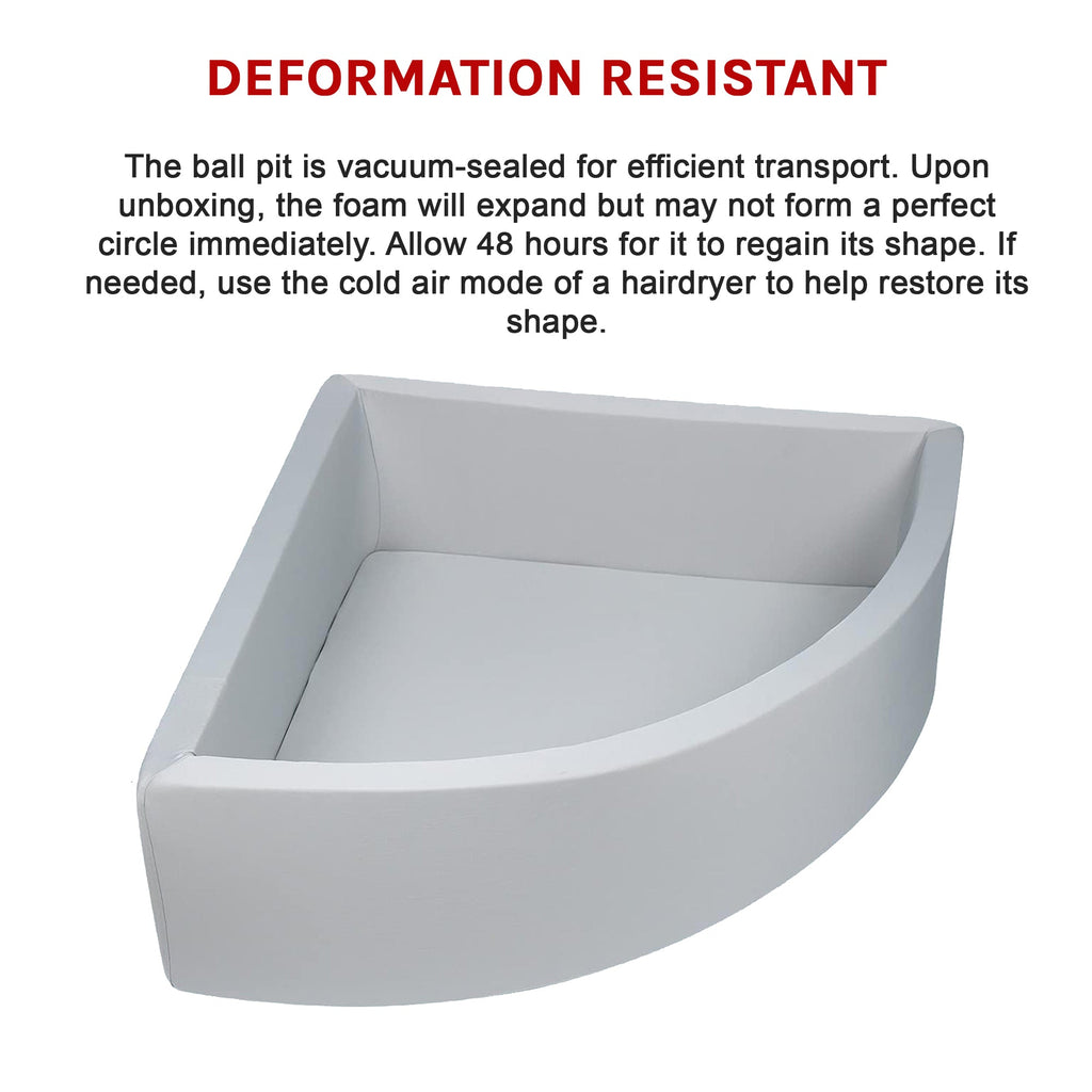 The Ball Pit Arrives Vacuum-Sealed For Efficient Transport. Once Unboxed Allow Up To 48 Hours For The Foam To Fully Expand And Regain Its Shape. If Needed Use A Hairdryer On Cold Air Mode To Help It Return To Its Perfect Form.