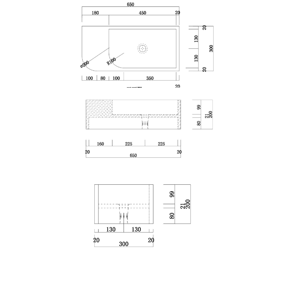 650Mm X 300X200mm No Tap/Faucet Mount No Overflow Domestic Commercial And Hotel Use Can Be Wall Hung Or Bench Top Mounted Chrome Pop-Up Plug Drain Included