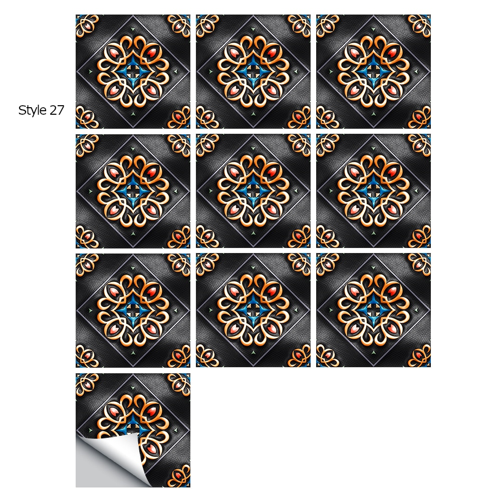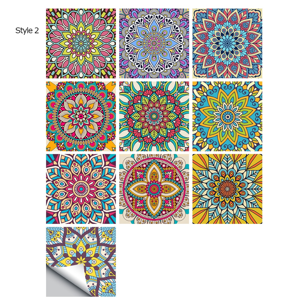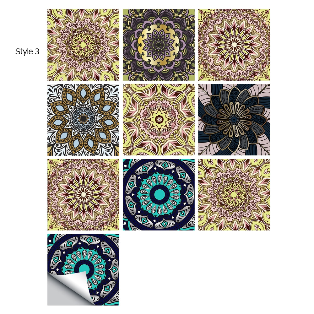 10 Piece Set Mandala Crystal Hard Film Tiles Wall Stickers Kitchen Bathroom Wardrobe Tile Décor