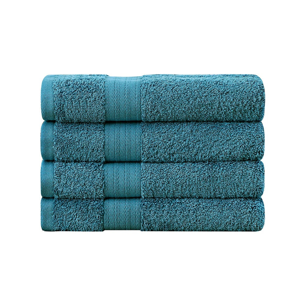 Linenland Bath Towel 4 Piece Cotton Hand Towels Set Blue Towels & Washcloths