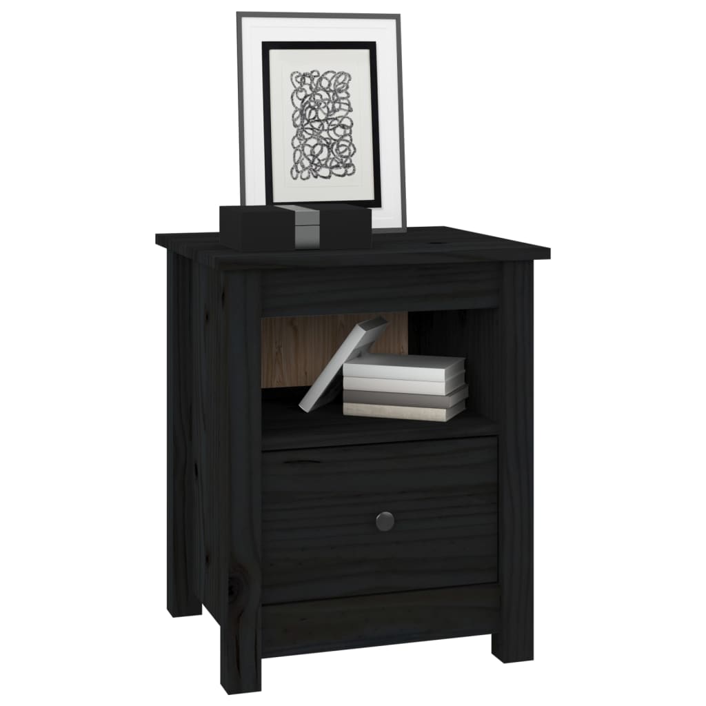 Bedside Cabinets 2 Pcs Black 40X35x49 Cm Solid Wood Pine Bedside Tables
