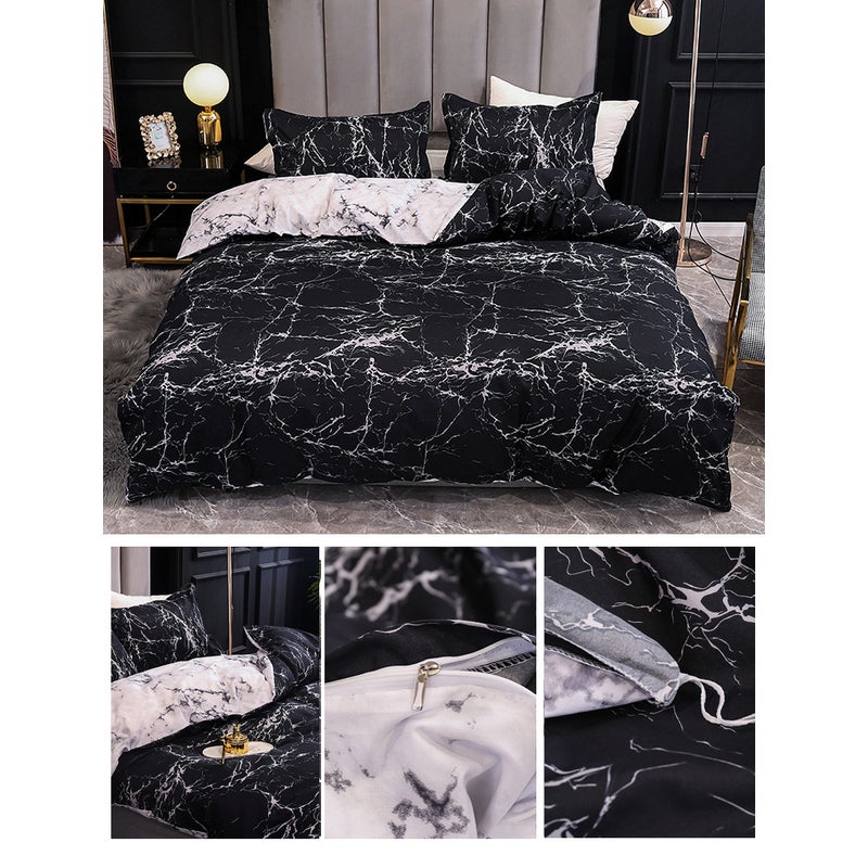 3Pcs Queen Bed Quilt Cover Set One Two Pillowcases Marble Print Black Quilt Covers