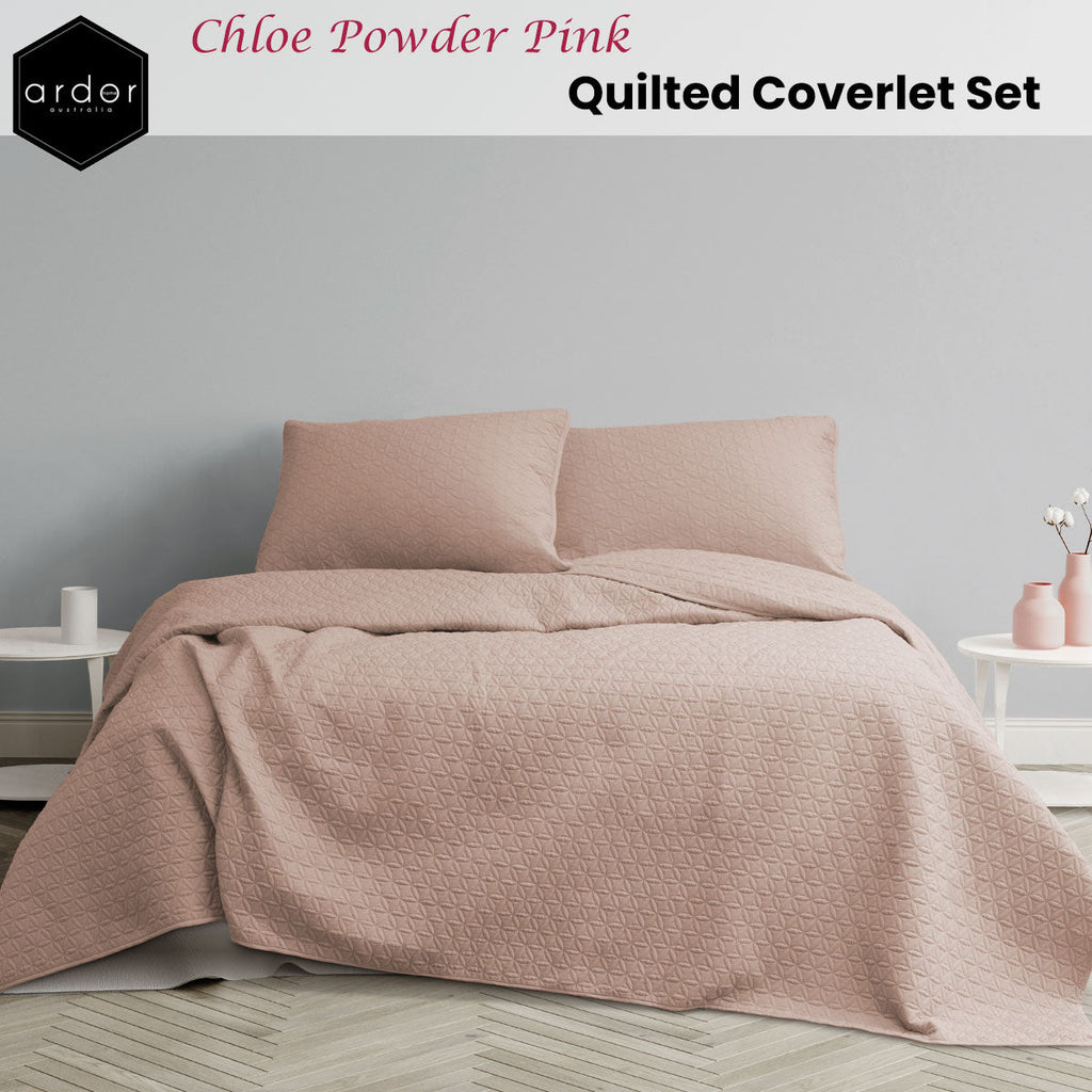 The Chloe Powder Pink 3 Pcs Quilted Coverlet Set Queen/King By Ardor Features A Delicate Floral Touch. With Soft Texture That Evokes A Sense Of Calm In Your Bedroom. The Fresh Colour Of Powder Pink Paired With The Floral Quilting; Chloe Brings A Subtle Hint Of Romance To Your Home Style. It Is Made From Quality And Soft Touch Microfibre Fabric And Polyester Fill For A Relaxing And Cosy Night's Sleep.