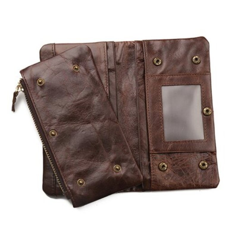 Multifunctional Zipper Mobile Phone Change Bag Leather Long Men's Wallet Deep Coffee 1Pc Wallets