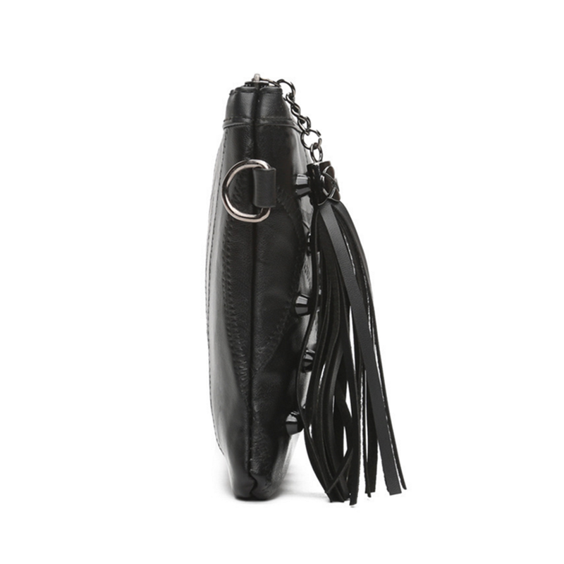 Black Punk Rivets Braided Crossbody Purse With Tassel Zipper Bags