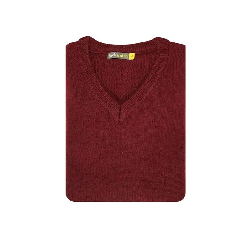 Jacksmith 100% Shetland Wool V Neck Knit Jumper Pullover Mens Sweater Knitted Burgundy (97) Jumpers