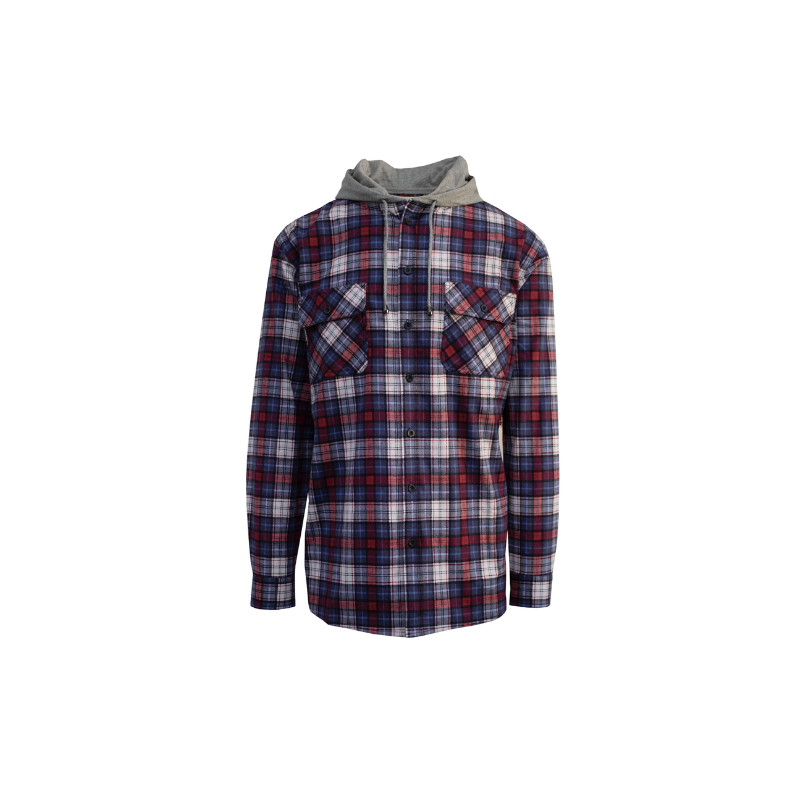 Men's Cotton Flannelette Shirt W Jersey Hood Long Sleeve Flannel