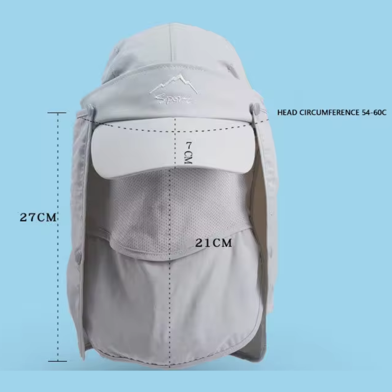 Four-In-One Design: Includes A Wide Brim Removable Face Flap Neck Cover And Breathable Mesh For All-Around Protection.
