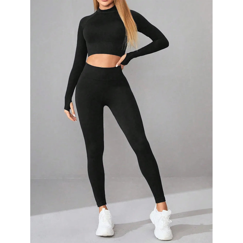 Neck Long Sleeve Top And Leggings Active Set Tracksuits & Sets