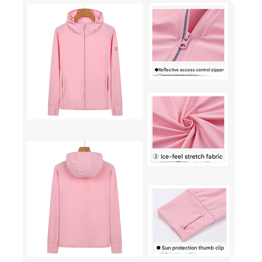Pink Long Sleeve Uv Protection Summer Breathable Knitted Ice Silk Outdoor Sun Clothing Unisex Thin Sunscreen Shirt Hoodies & Sweatshirts