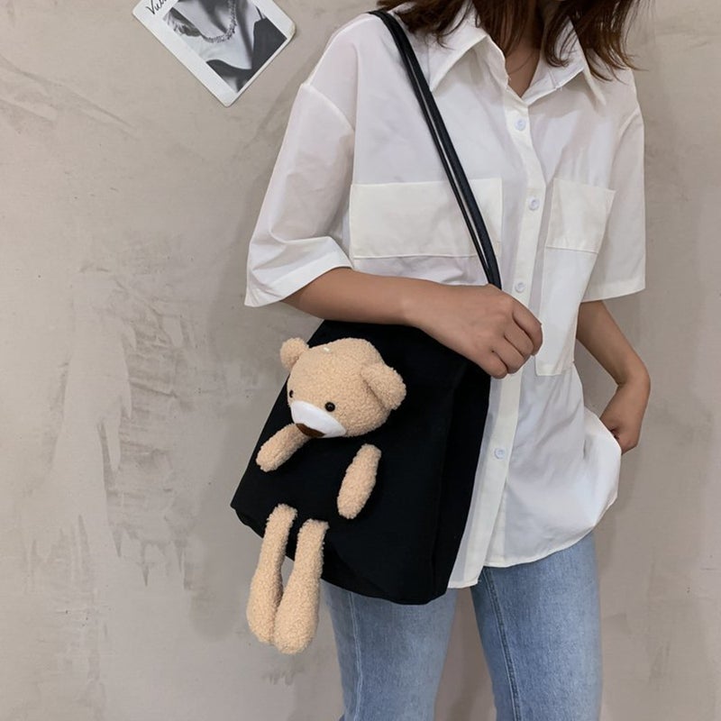 Cartoon Cute Bear Canvas Bag Portable Shopping Ladies Crossbody Bags Women Eco Tote Travel Shoulder Cloth Handbag Women's Bags & Handbags