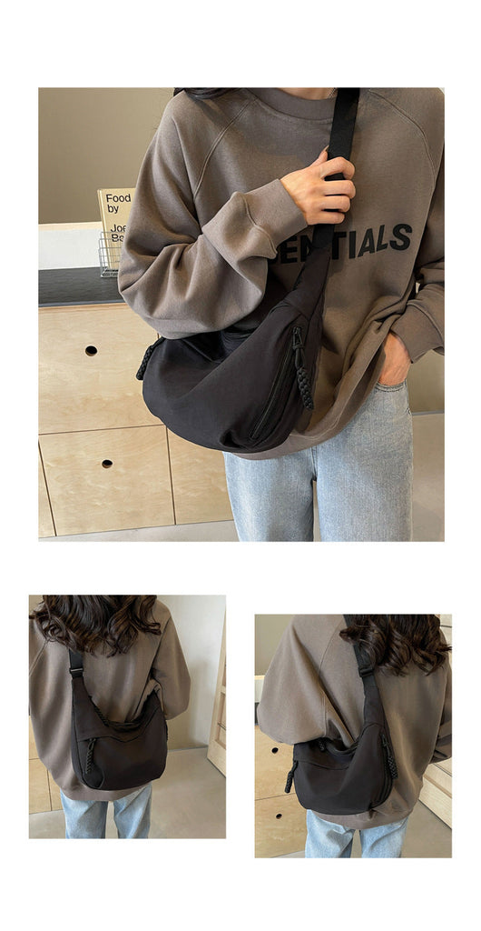 Black Large Nylon Crescent Crossbody Bag Casual Slouchy Shoulder Purse Women's Bags & Handbags