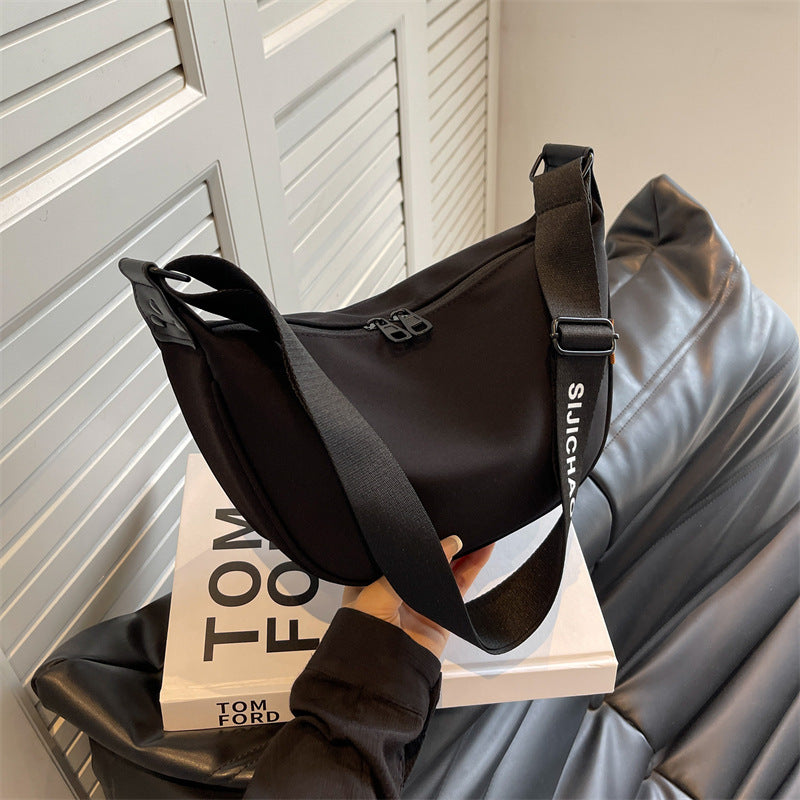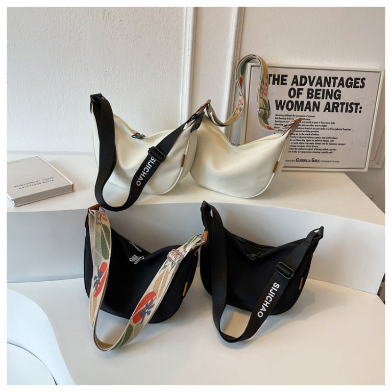 Black With Suspenders Large Capacity Canvas Shoulder Bag Casual Crossbody Dumpling Women's Bags & Handbags