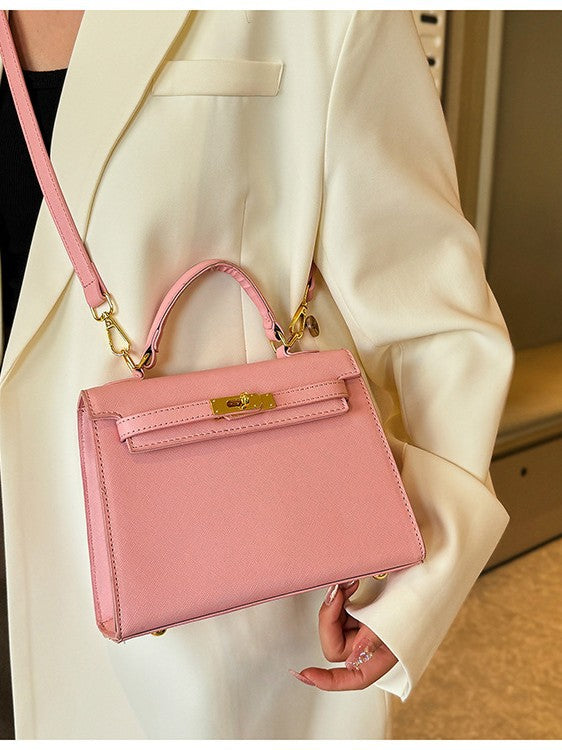- 1 X Elegant Pu Leather Top Handle Satchel Bag (Pink)