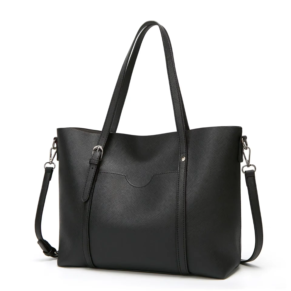 Elosung Black Fashionable Soft Leather Women's Handbag Large Capacity Shoulder & Crossbody Tote Casual Bucket Bag Women's Bags & Handbags