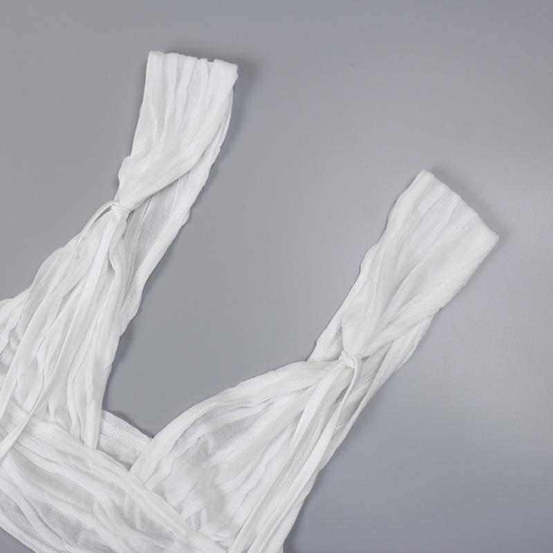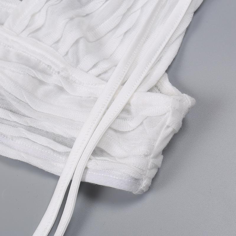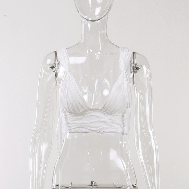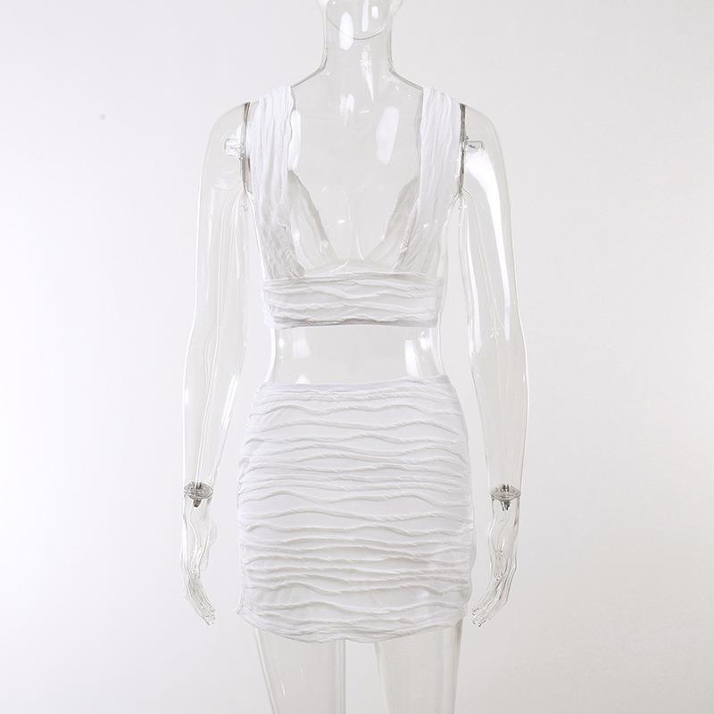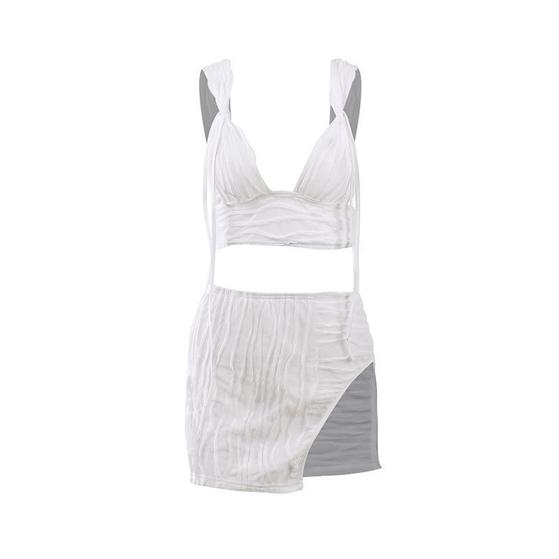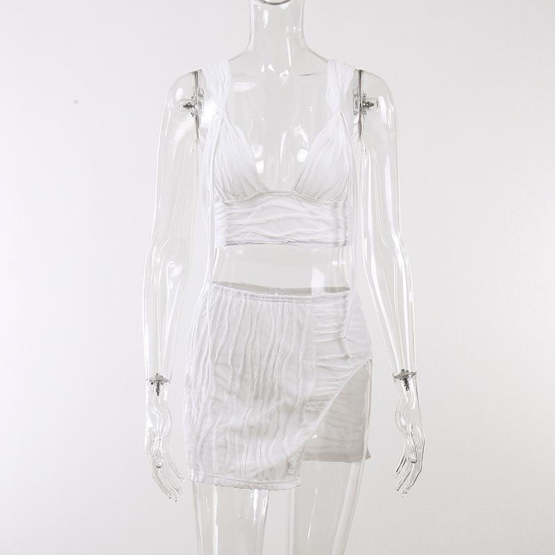 White Pleated Mini Skirt Crop Top Set Women Outfits & Sets