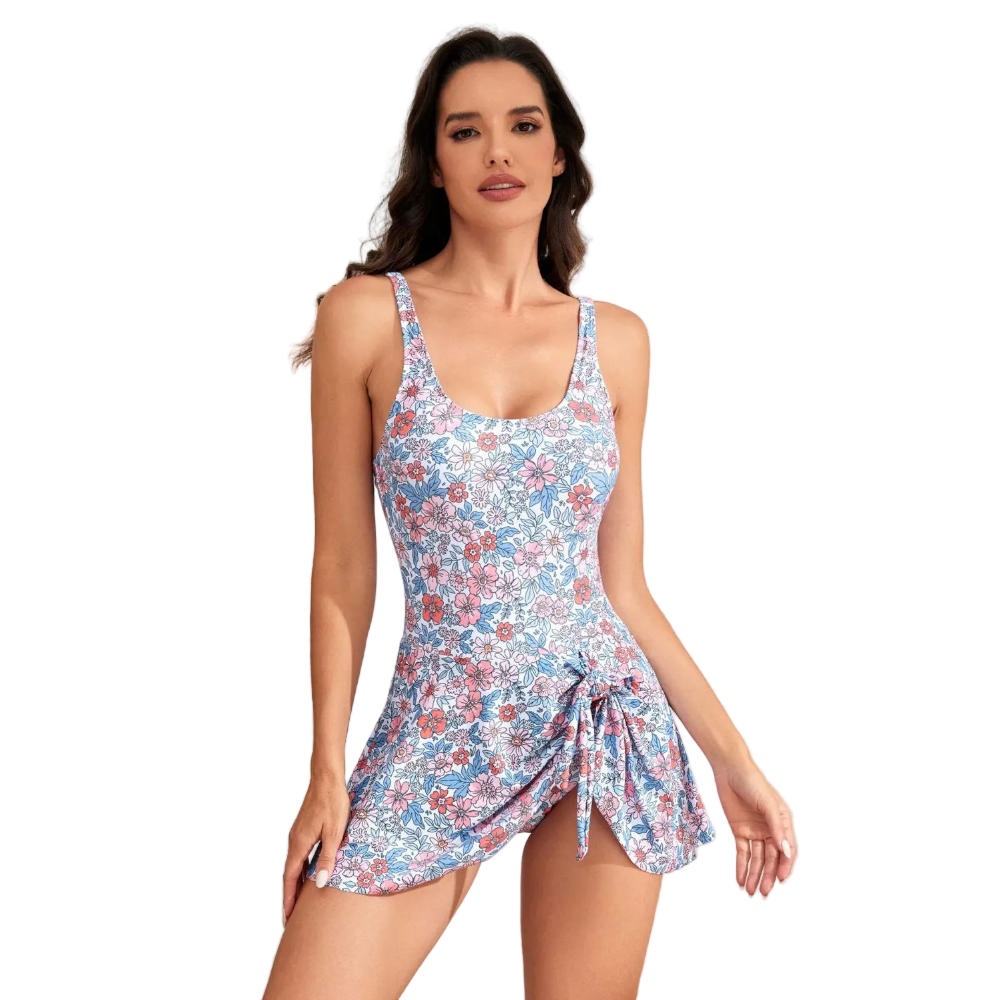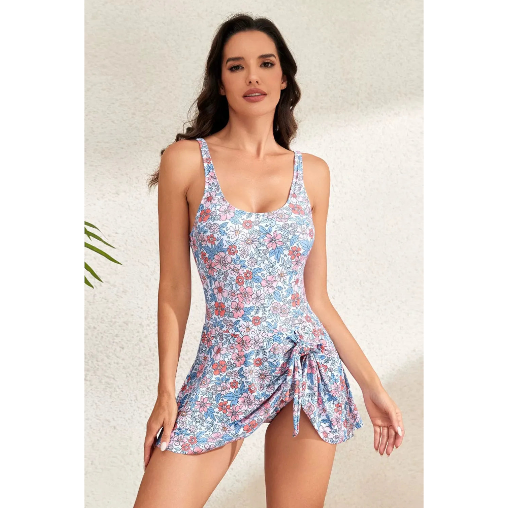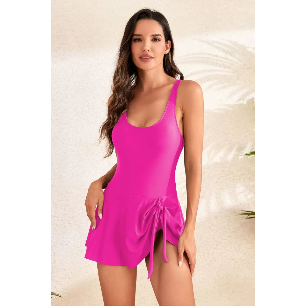Drawstring Scoop Neck Wide Strap One Piece Swimwear