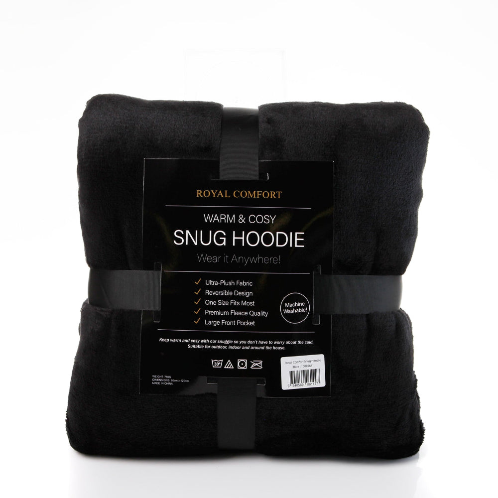 Royal Comfort Snug Hoodie Nightwear Super Soft Reversible Coral Fleece 750Gsm Black Hoodie Robes